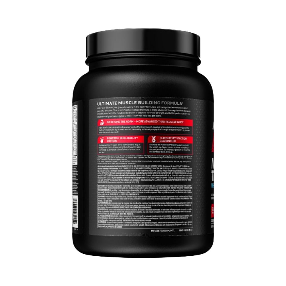 MuscleTech Nitro-Tech Whey Protein is a high-purity protein supplement combining whey protein concentrate, whey protein isolate and whey peptides in one convenient serving. Each portion provides a defined amount of protein along with added creatine monohydrate and enzyme support in a flavoured powder format. The product is suitable for individuals who wish to increase their daily protein intake as part of a balanced diet and active lifestyle.