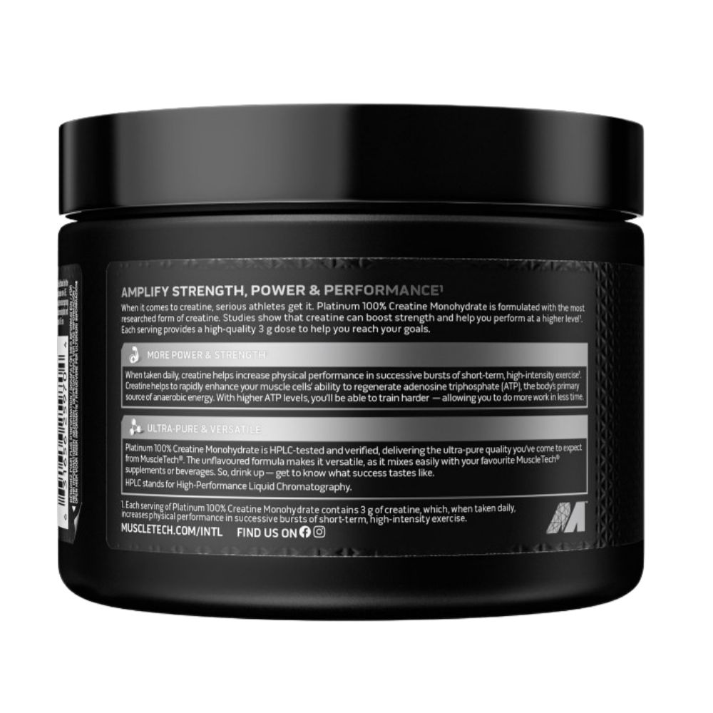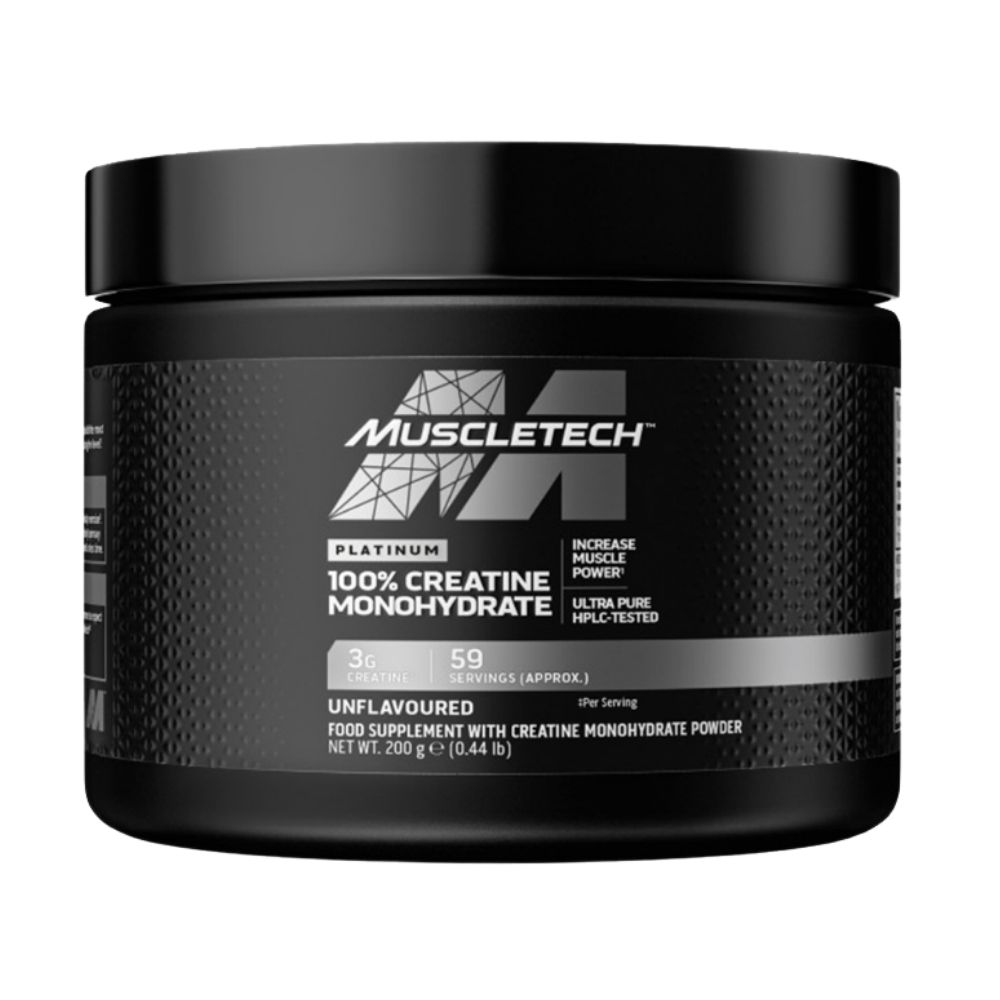 MuscleTech Platinum 100% Creatine Monohydrate 200 g is a single-ingredient supplement providing high-purity, micronized creatine monohydrate in a convenient powder format. Each serving delivers a defined dose of creatine, which can be easily mixed with water or other beverages. The formula is unflavoured and contains no added sugars, sweeteners or colouring agents.