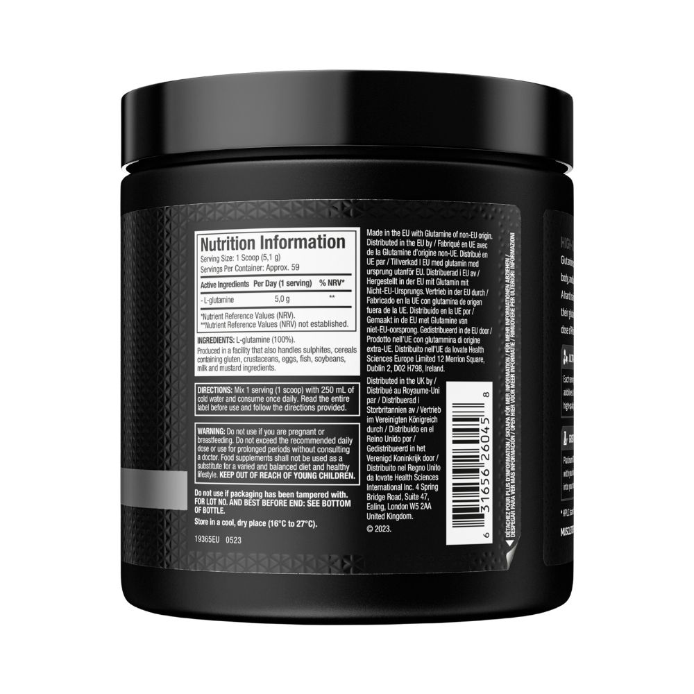 • Unflavoured L-Glutamine powder providing 5 g per serving