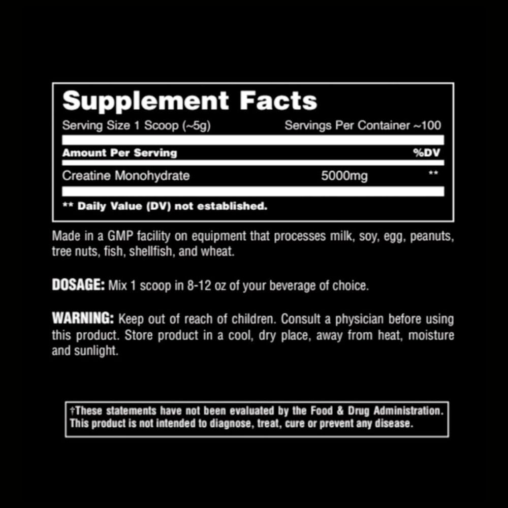Ingredients: Creatine Monohydrate (micronised). Other Ingredients: None or processing-aid materials (please refer to the product label for full details).